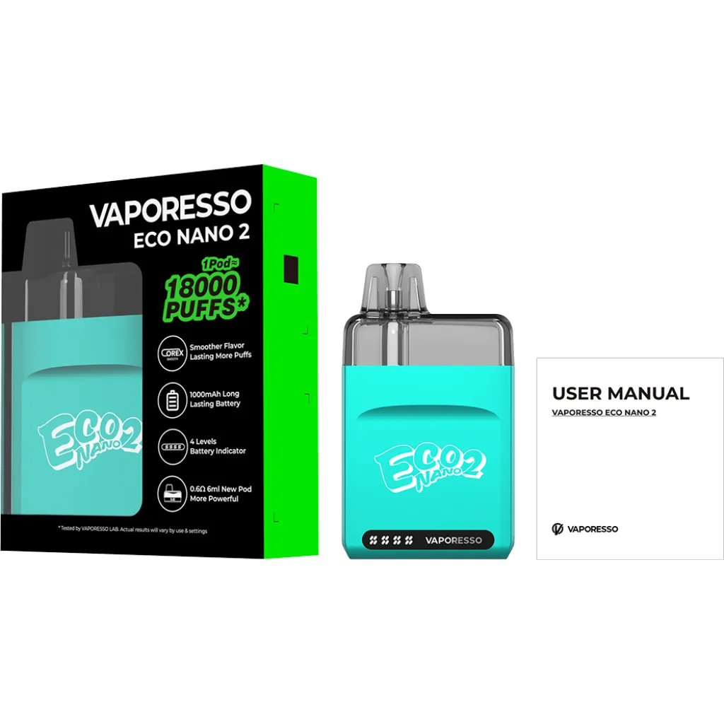 El kit de vapeo Vaporesso Eco Nano 2 presenta una bienvenida actualización del anterior kit de pod Eco Nano. Construido con el mismo diseño compacto con una potente batería interna de 1000 mAh, este último dispositivo cuenta con un nuevo indicador LED de 4 niveles para brindar una indicación más clara de los niveles de la batería.